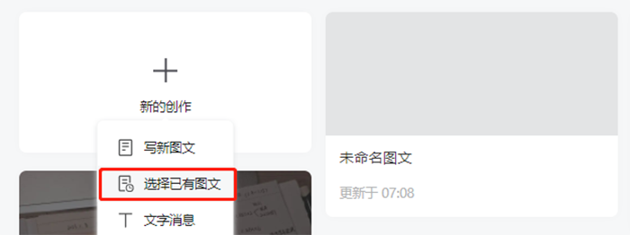 我之前写过电脑排版公众号文章的懒人方法,“选择已有图文”进行修改创作。
